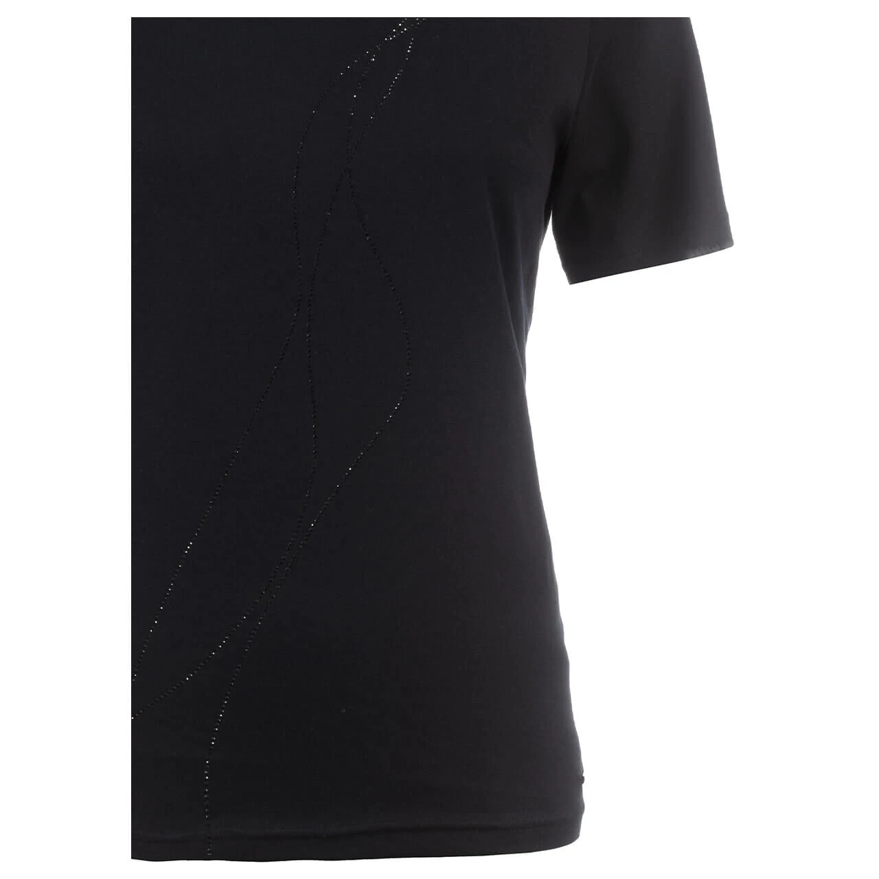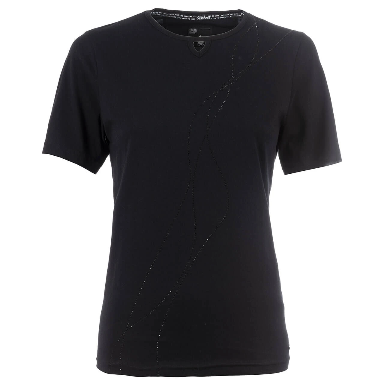 Geschlängelte Linien aus schwarzem Strass verlaufen entlang des Soquesto Damen T-Shirts. Das Detail am Rundhalsausschnitt gibt dem Oberteil zusätzlichen Wiedererkennungswert!