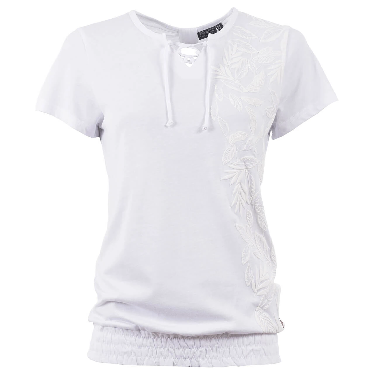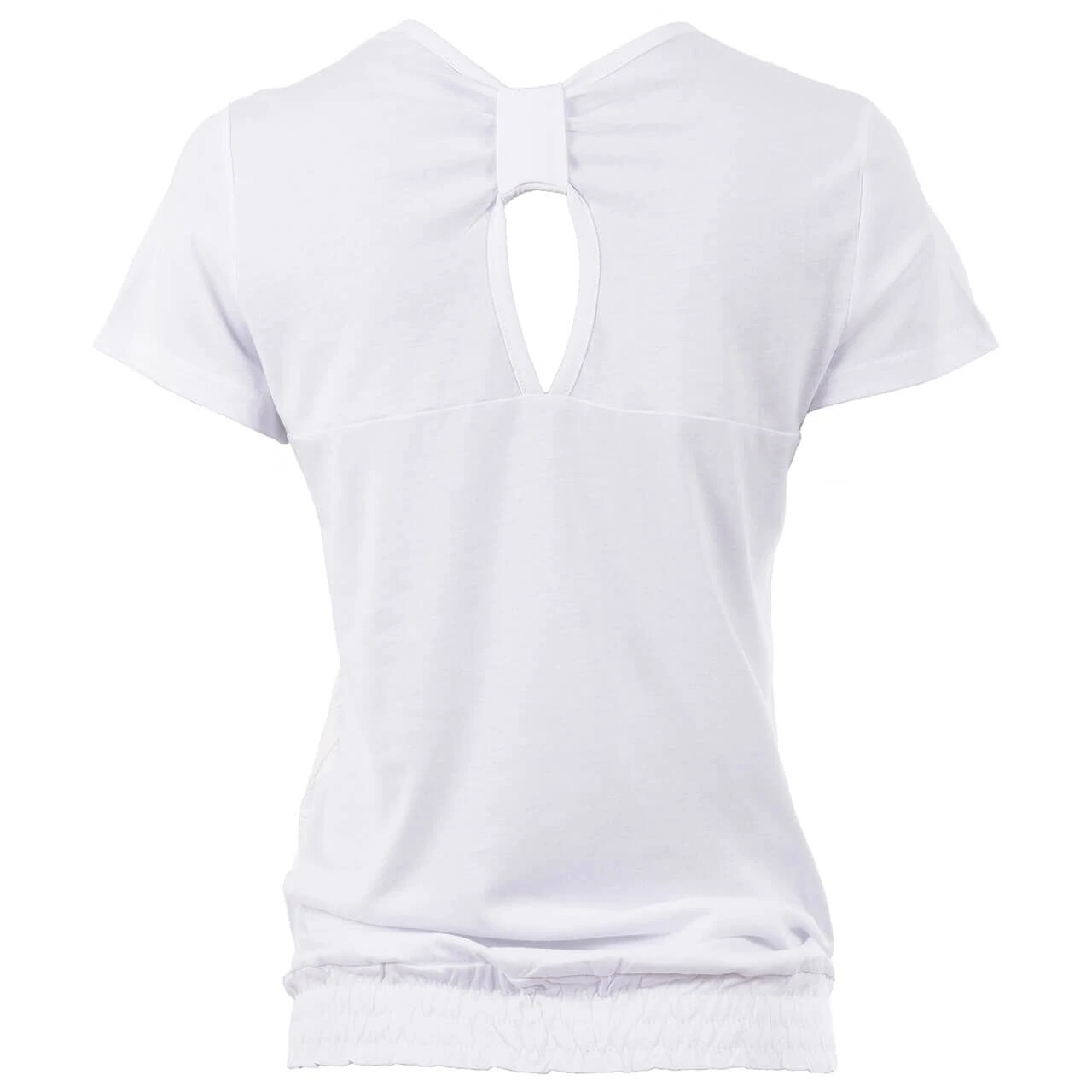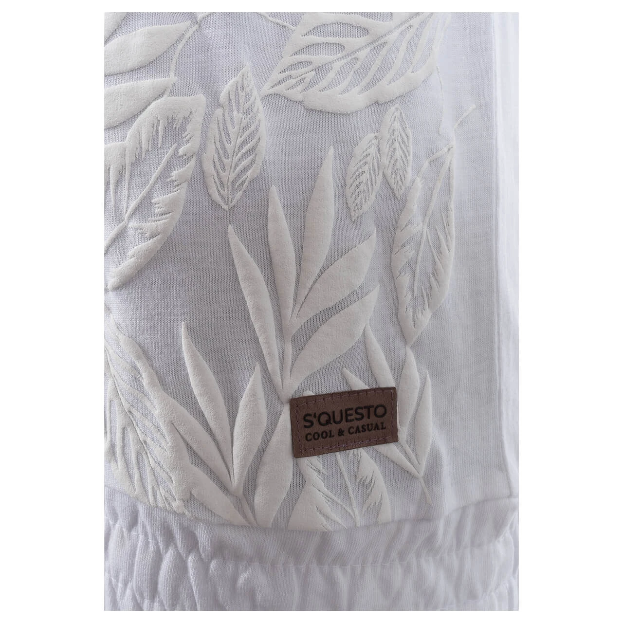 Eine schlichte Farbe, aber liebevolle Details: Das Soquesto Damen T-Shirt präsentiert sich mit einem Cut-Out am Rücken und einem erhabenen Blätterprint auf der linken Frontseite.