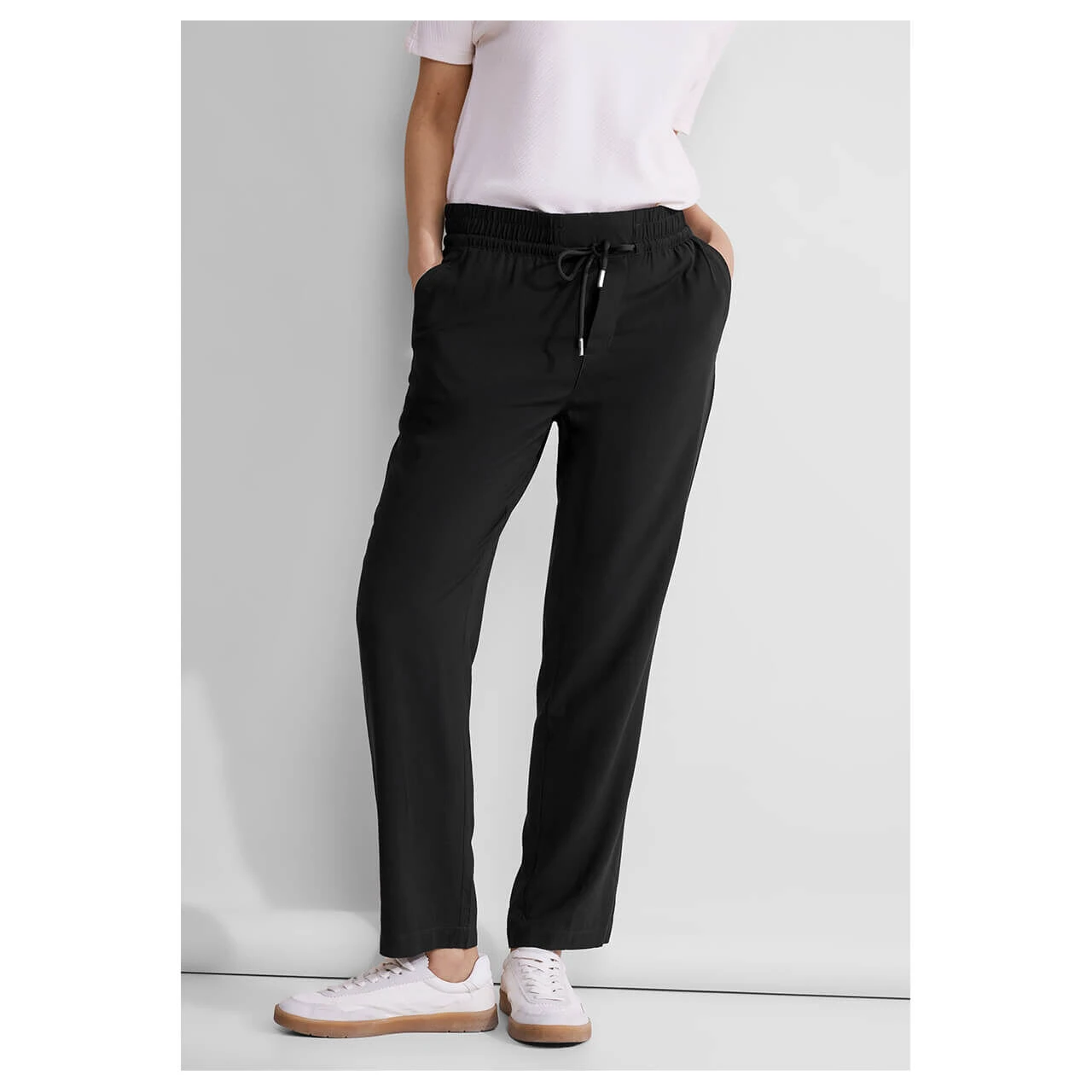 In softer Viskose überzeugt die Street One Damenjeans Bonny! Das fließende, leichte Material trägt sich angenehm und wird durch den luftigen Schnitt zu einem optimalen Begleiter bei warmen Temperaturen.