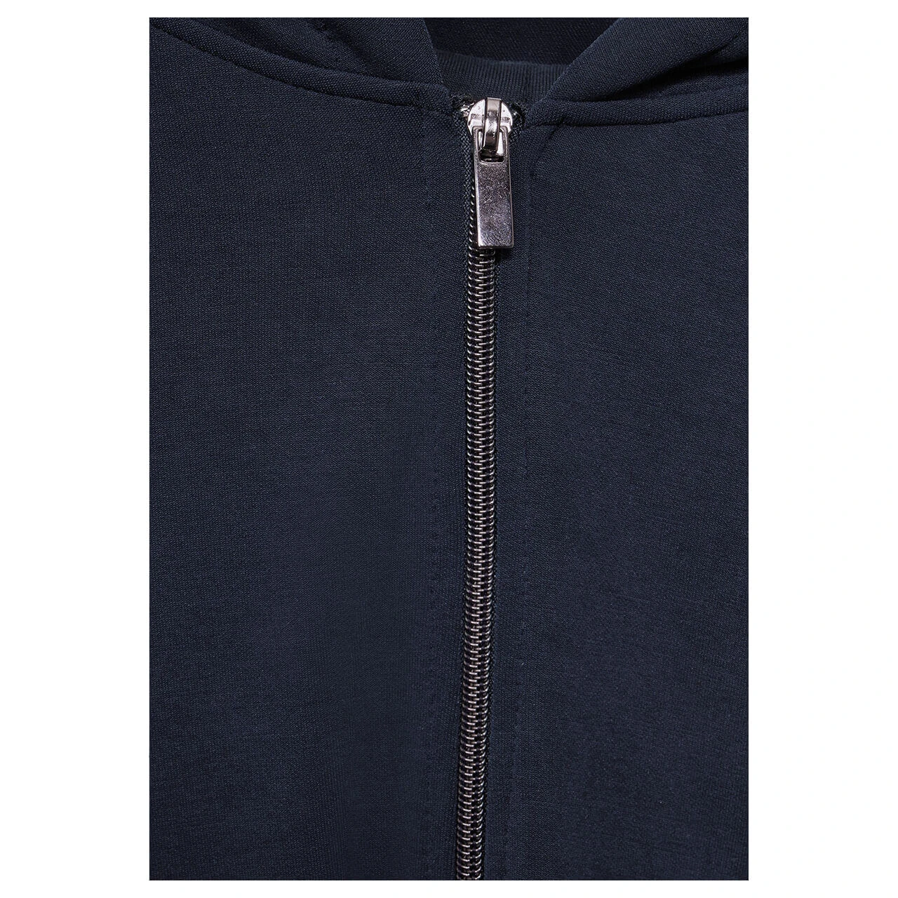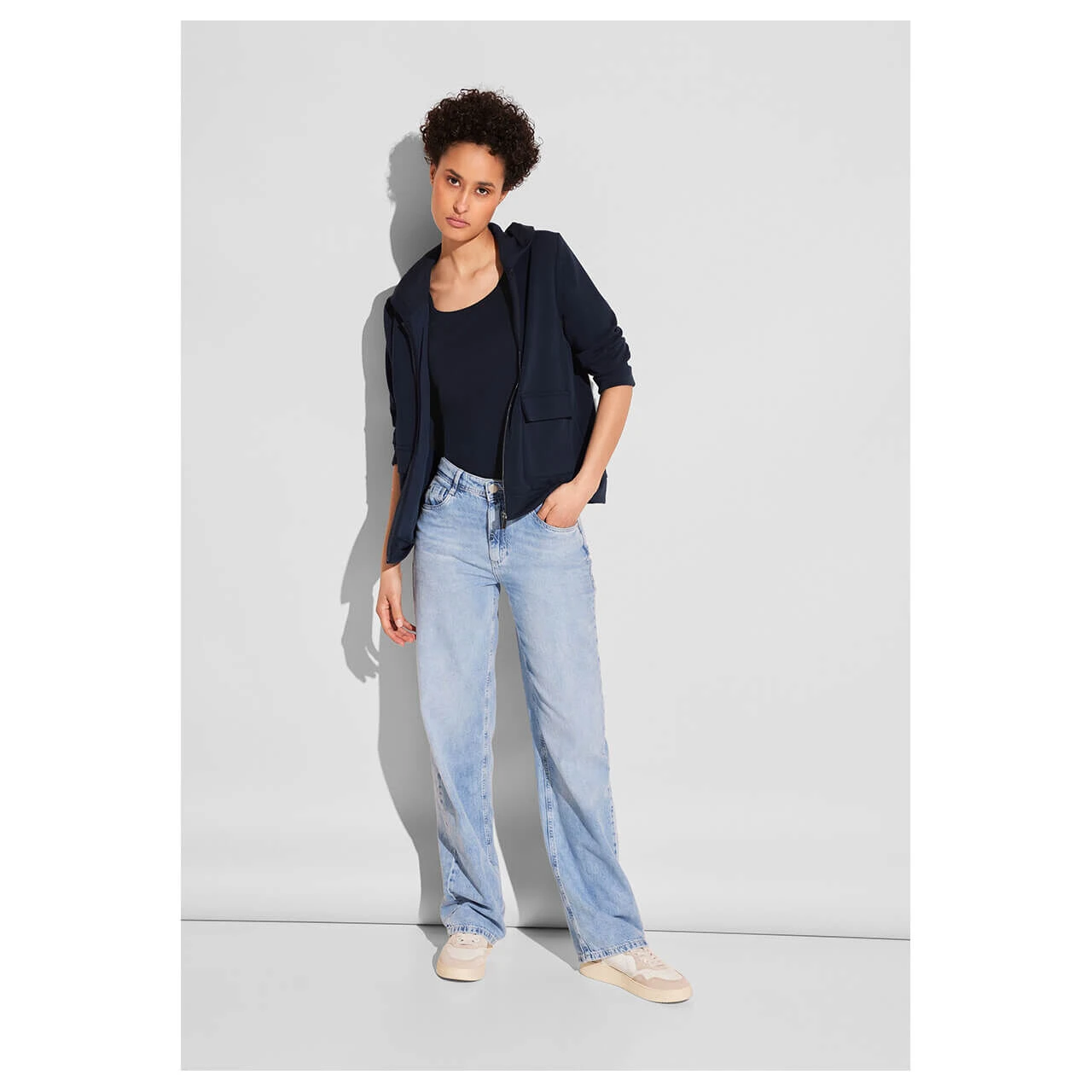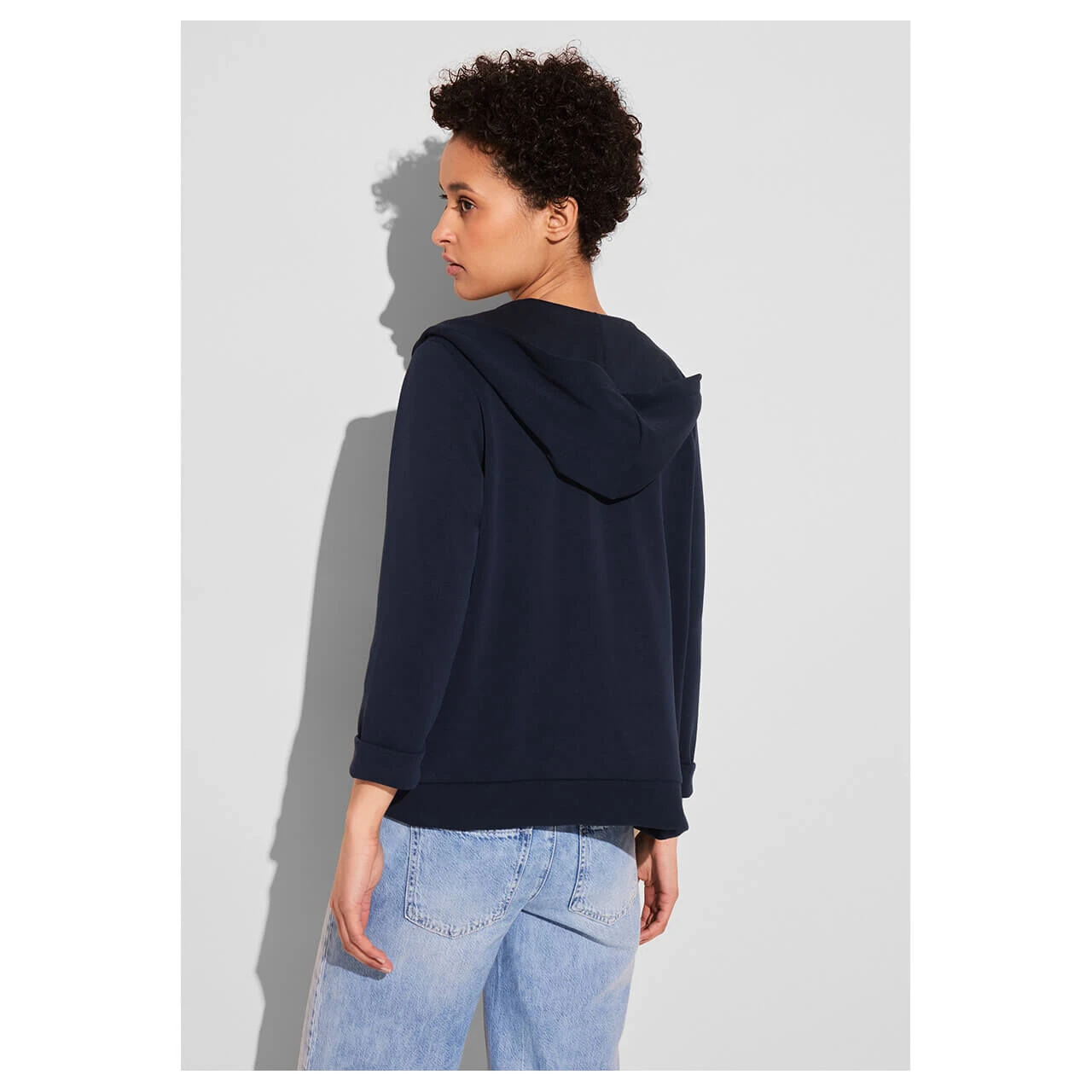 Die Street One Damen Shirtjacke überzeugt durch ihre Kapuze mit einem modernen Look. Der Reißverschluss und die Klappentaschen sorgen für praktische Details, während der Materialmix mit Stretchanteil angenehmen Tragekomfort bietet. Der 3/4 Arm macht diesen Seidenlook-Cardigan zu einem sportiven Begleiter für jede Jahreszeit!