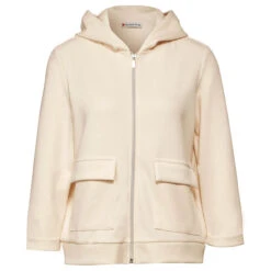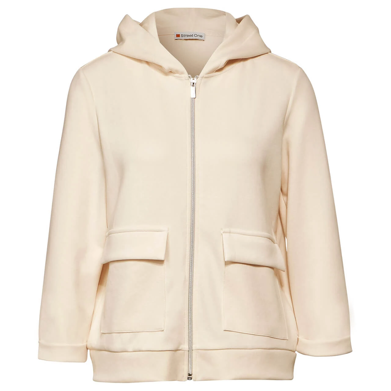 Damen 3/4 Arm Hoodie Shirtjacke Silk Look in Cremeweiß