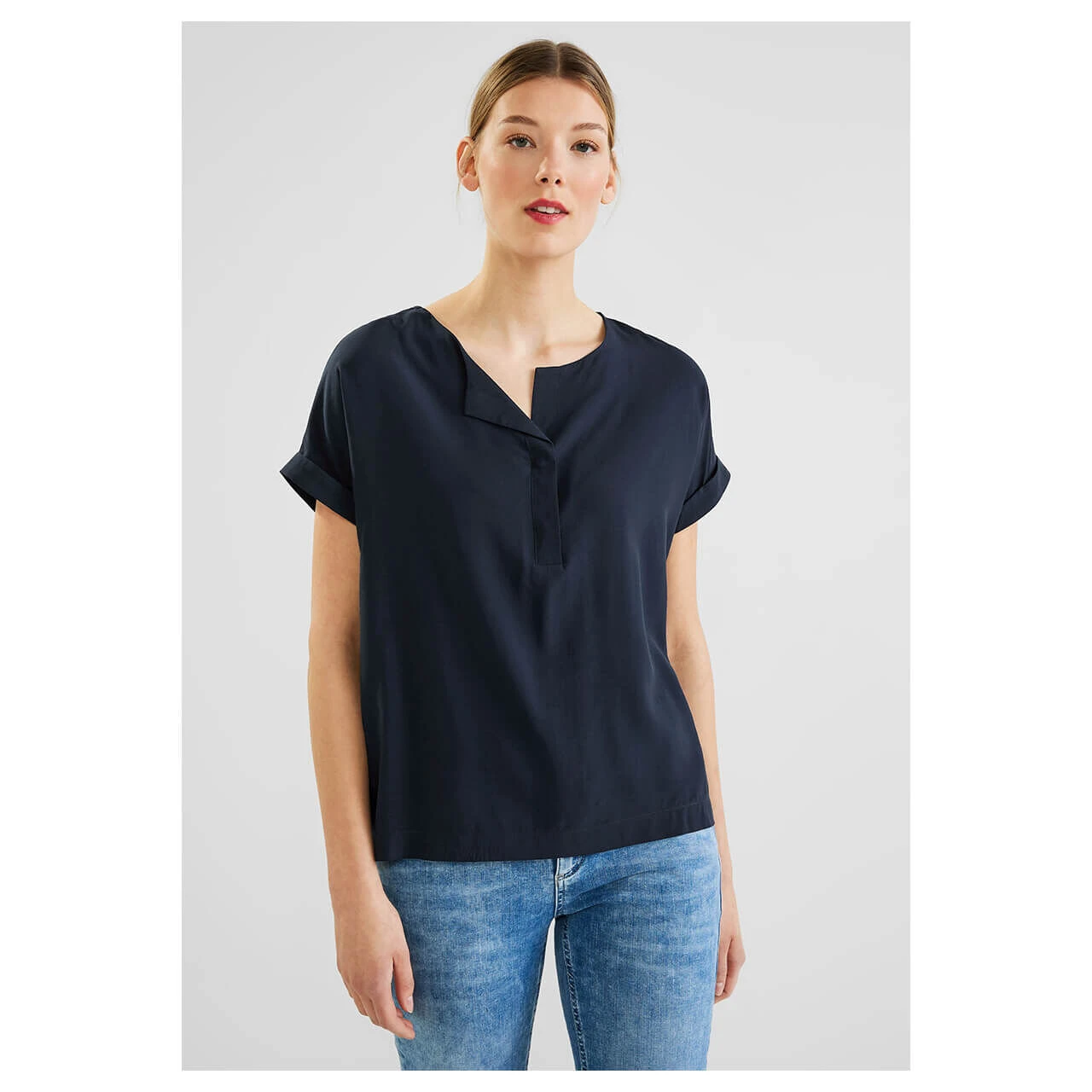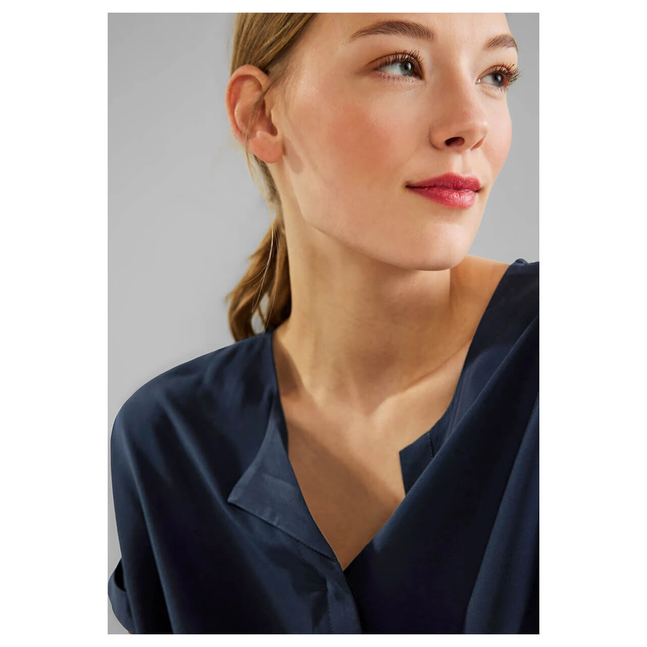 Spring vibes! Lässig geschnittene Damen Bluse in Unifarbe von Street One, die in softer Viskose locker fällt. Besonderes Detail ist der Klappenkragen, der ihr einen modischen Look verpasst.