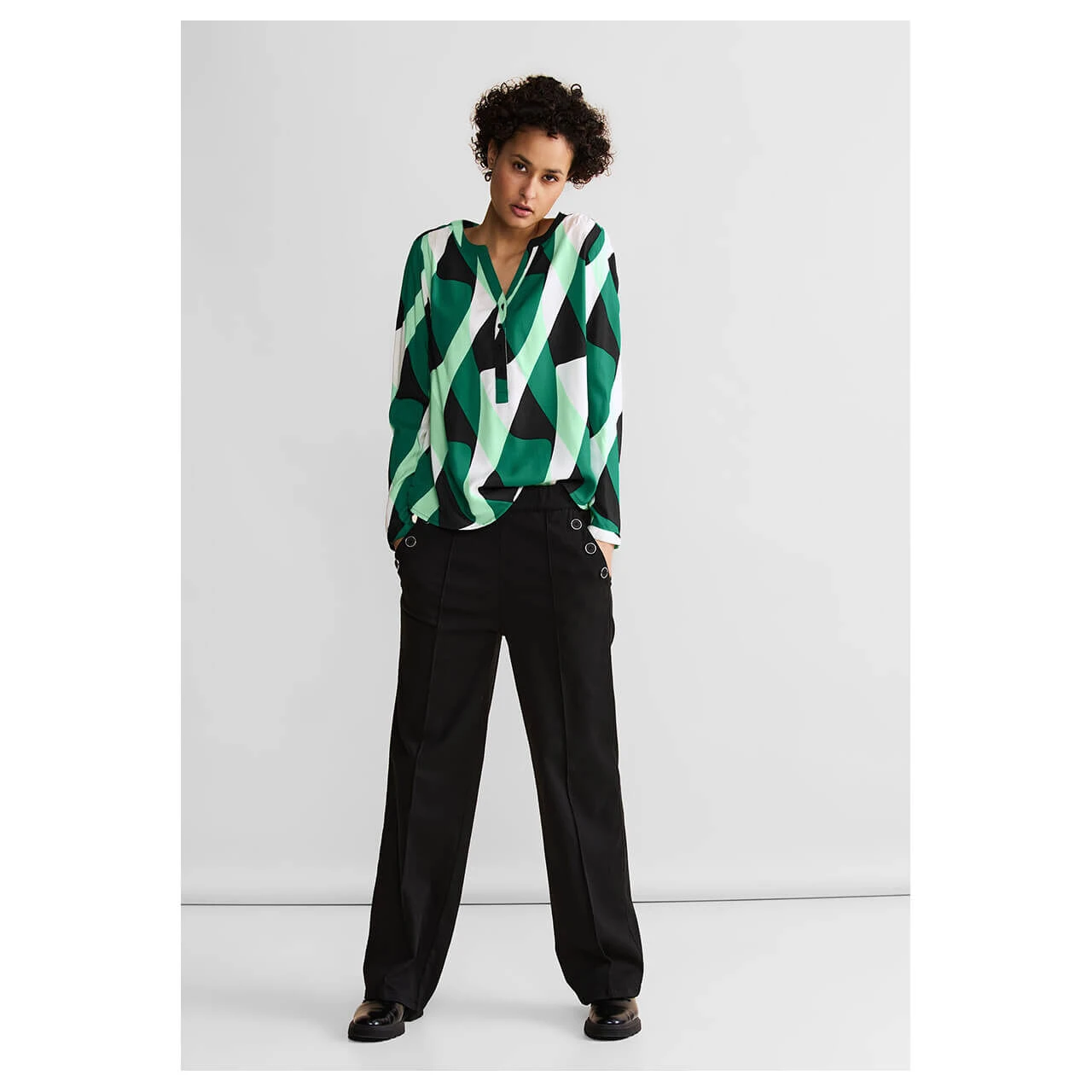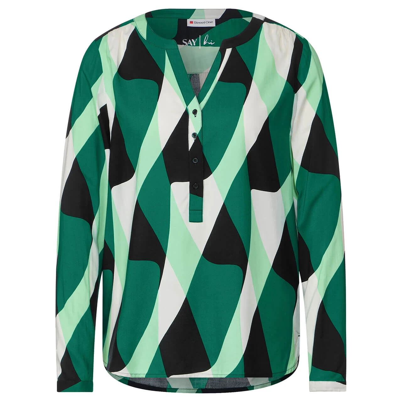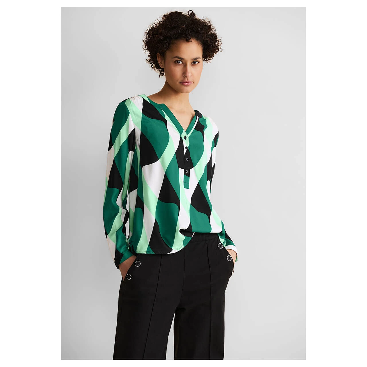 Stilvoll im Alltag unterwegs! Die Damen Bluse im Style Bamika von Street One mit geschlitztem Rundhalsausschnitt und halber Knopfleiste verleiht Ihnen stets ein souveränes Auftreten. Ob für Freizeit oder Büro, diese leichte und bequeme Damenbluse ist immer die perfekte Wahl, um modisch-schick gekleidet zu sein. Das mehrfarbige Muster bietet Ihnen außerdem zahlreiche Stylingmöglichkeiten.