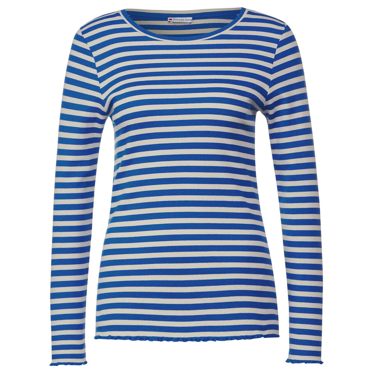 Gerippter Liebling! Das Damen Langarm Shirt von Street One begeistert mit seinem zeitlosen Streifendessin und einem bequemen Rundhalsausschnitt. Der leicht gewellte Saum verleiht diesem Oberteil eine besondere Note und macht es zu einem echten Hingucker.