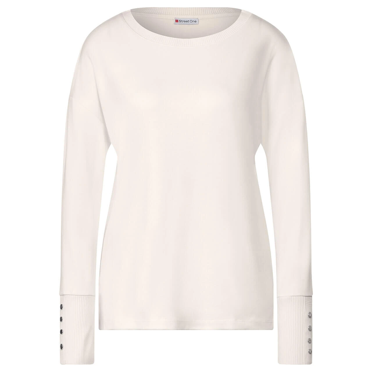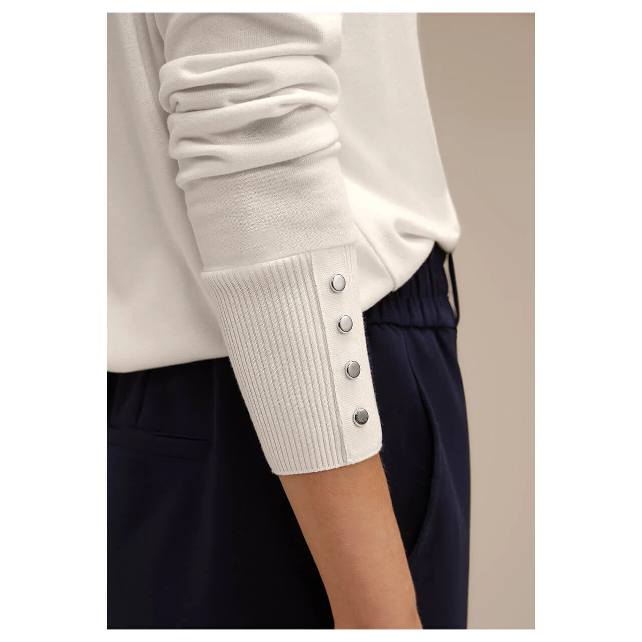 Stilvoll und vielseitig! Der Damen Pullover von Street One zeigt sich mit dekorativen Knöpfen am Rippbündchen und einem weichen Viskosemix. Er lässt sich in Unifarbe vielseitig kombinieren und bietet angenehmen Tragekomfort.