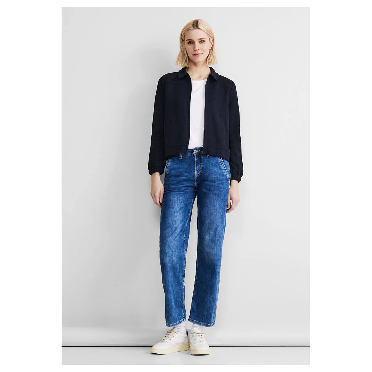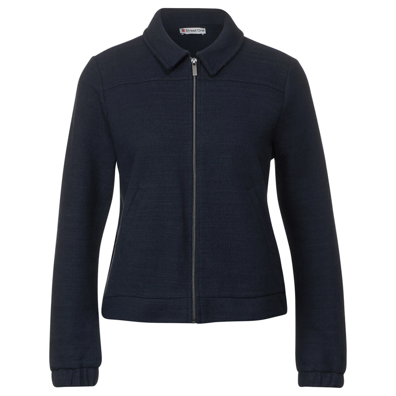 Die feine Damen Shirtjacke von Street One präsentiert sich mit Kragen, Reißverschluss, Gummibund und Eingrifftaschen. Die leichte Qualität bringt Ihnen bequemen Komfort.