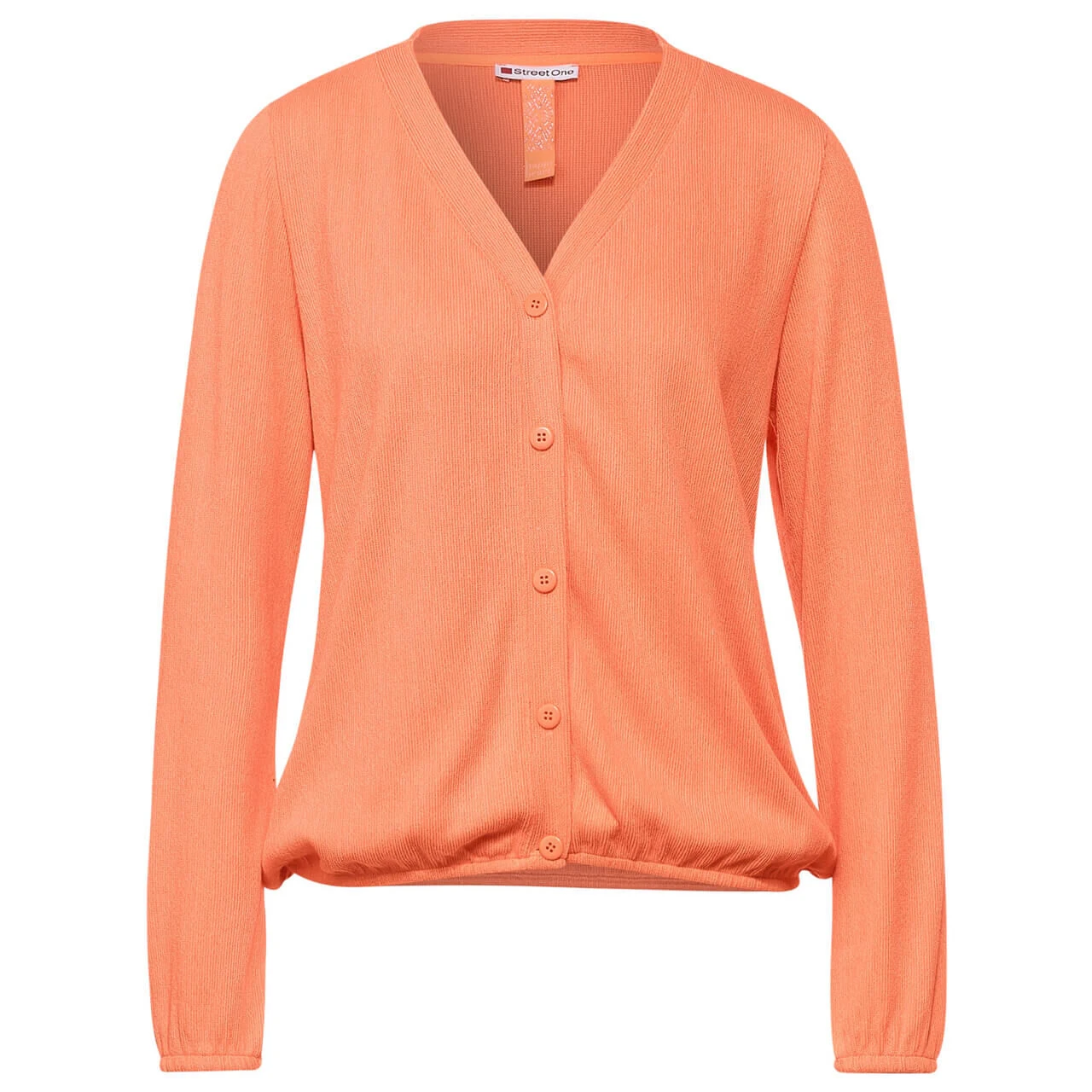 Hergeschaut! Die frische Unifarbene der Shirtjacke von Street One ist mehr als einen Blick wert. Der Gummizug in Saum und Ärmelbund sorgen für einen perfekten Sitz. Ein klassischer V-Ausschnitt und die sportliche Knopfleiste machen das bequeme Modell zum perfekten Tagesbegleiter. Kombinieren Sie die frische Farbe mit weißen Lieblingsteilen – wie einer modischen Damenjeans – und schon entsteht ein freundlicher Freizeitlook!