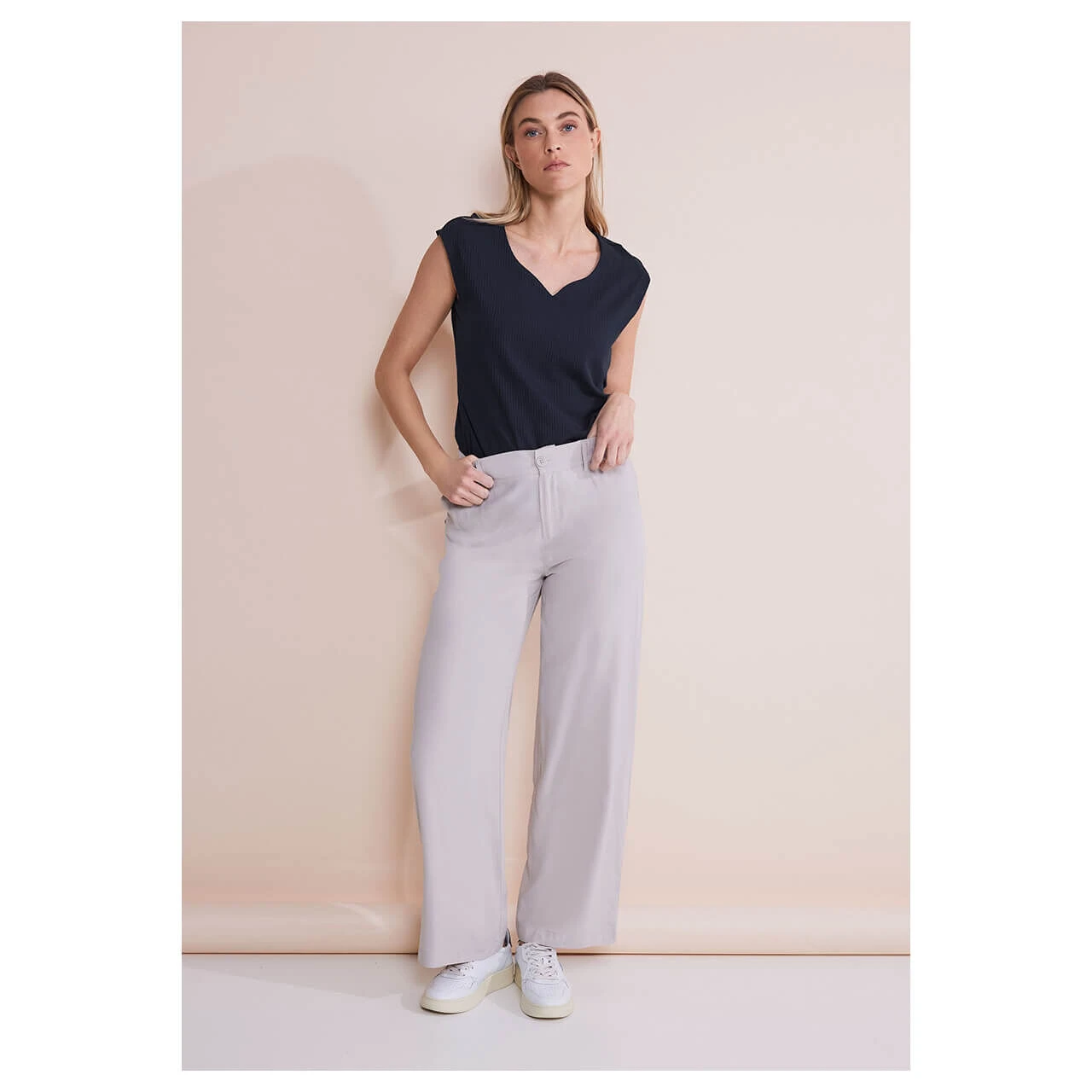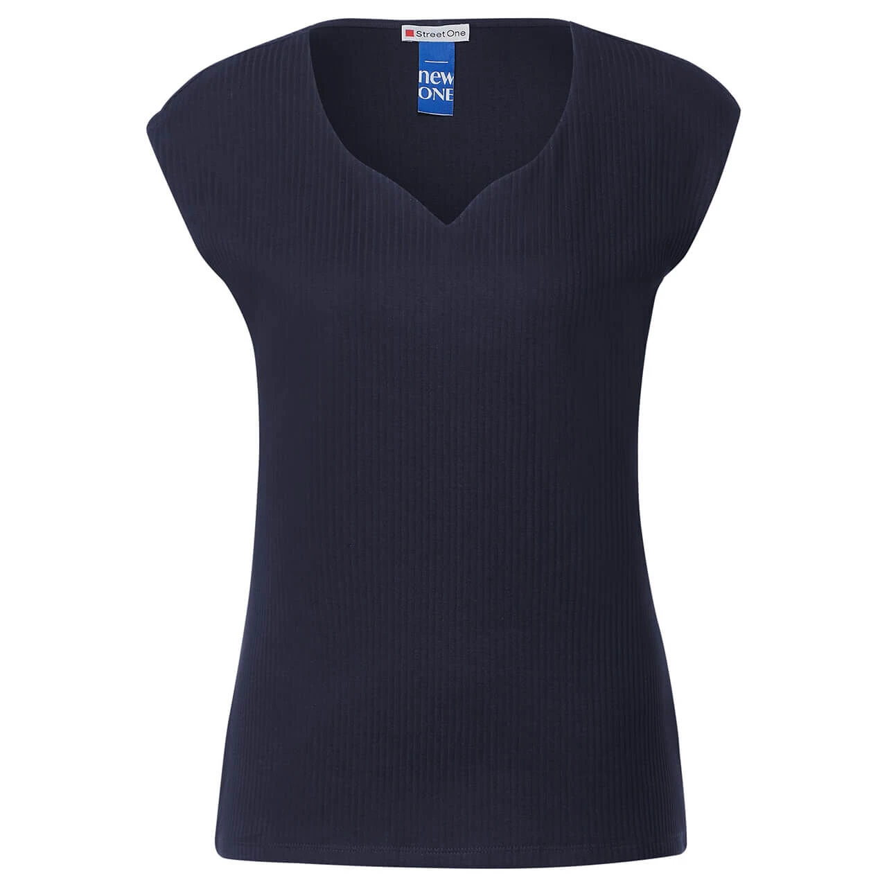 Das Street One Damen T-Shirt Ada mit Herzausschnitt ist ein femininer Allrounder für Ihren Kleiderschrank. Mit seinem nahezu ärmellosen Design, der Rippstruktur und der Baumwolle mit Stretchanteil bietet es nicht nur einen bequemen Sitz, sondern auch einen ansprechenden Look. Dieses unifarbene Oberteil eignet sich perfekt für verschiedene Anlässe und verleiht Ihrem Outfit eine feminine Note.