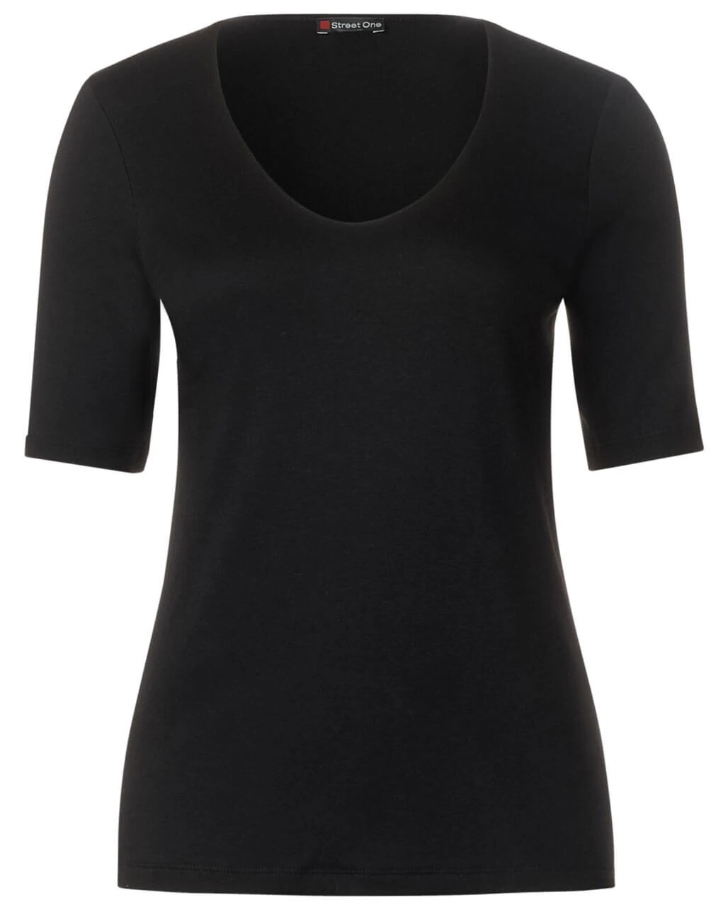 Sie lieben Basics? Dann ist das Damen T-Shirt Palmira von Street One ein absolutes Must-have in Ihrem Kleiderschrank! Der weiche Materialmix und die etwas längeren Ärmel sorgen für den hohen Tragekomfort.