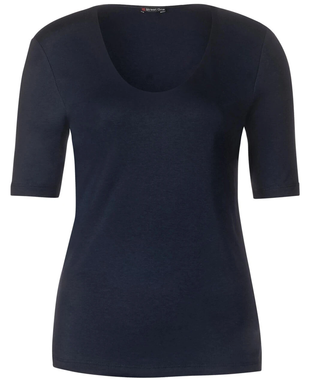 Sie lieben Basics? Dann ist das Damen T-Shirt Palmira von Street One ein absolutes Must-have in Ihrem Kleiderschrank! Der weiche Materialmix und die etwas längeren Ärmel sorgen für den hohen Tragekomfort.