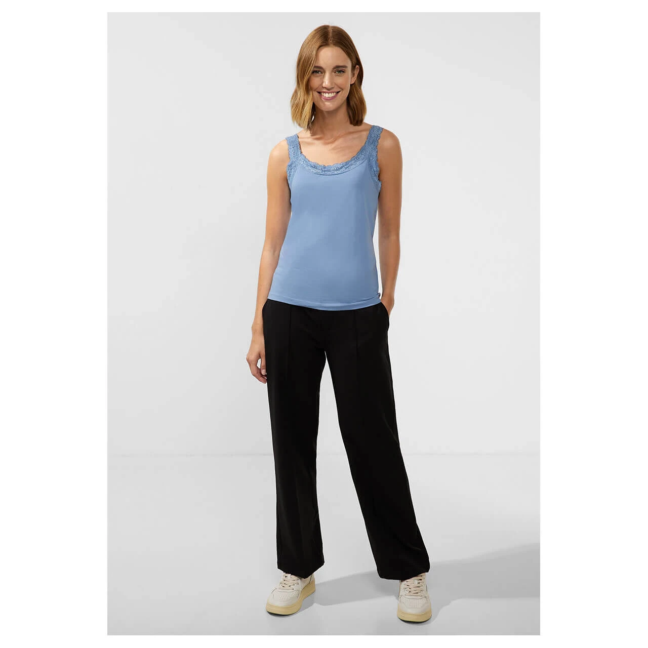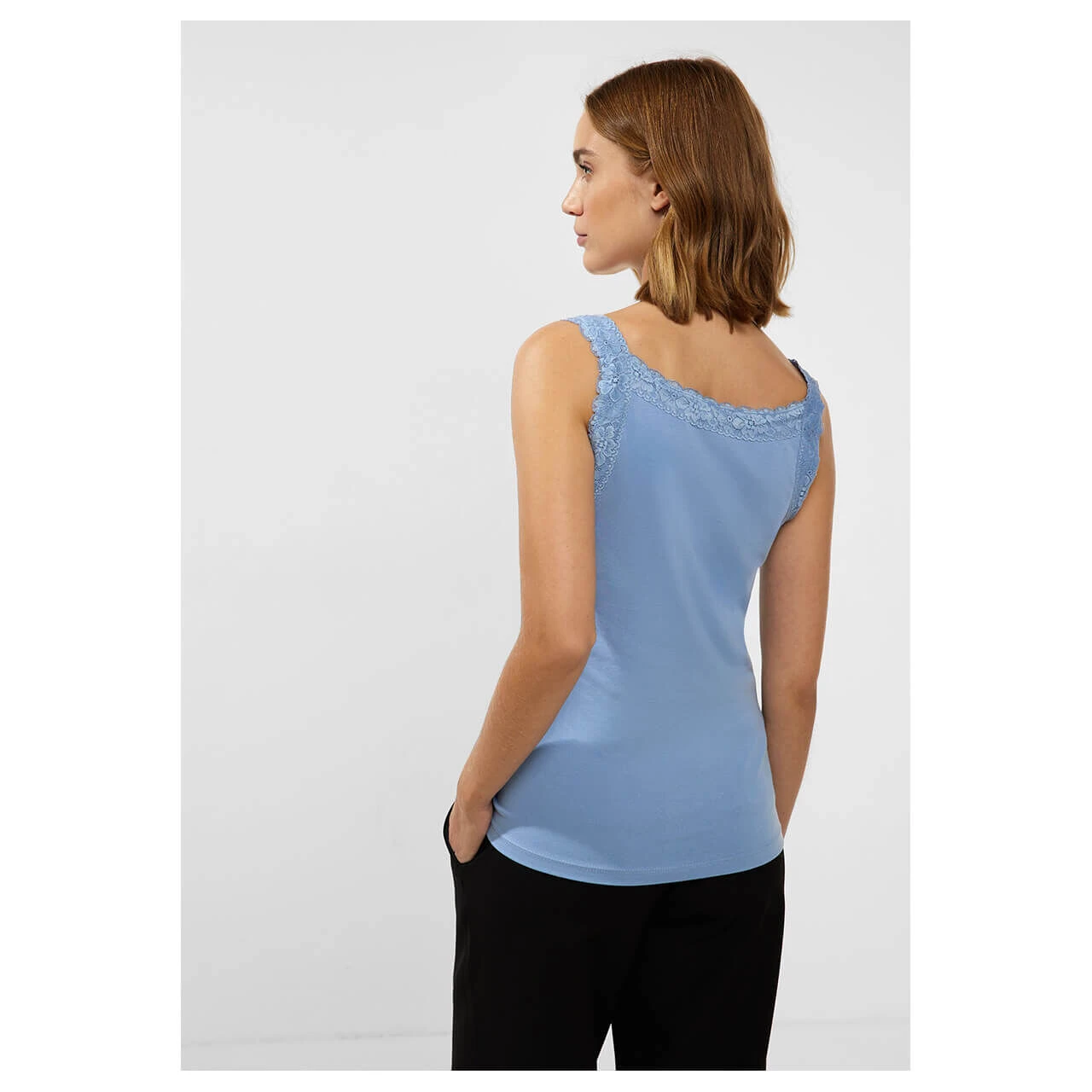 Summery charm! Das Street One Damen Top aus weicher Jersey-Qualität mit Rundhalsausschnitt und Spitze ist perfekt für einen sommerlichen Look. Die zeitlose Unifarbe macht es zum perfekten Basic-Piece für den Kleiderschrank.