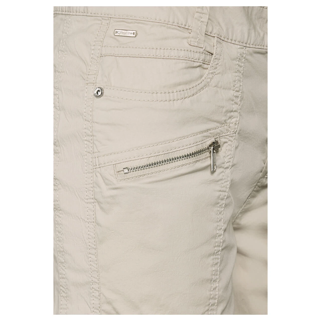 Sportlich, sportlich! Die Street One Jeans Yulius legt einen lässigen Auftritt mit cooler Knitteroptik und vielen Ziernähten hin. Die leichte Materialqualität macht den Komfort der verkürzten Damenhose perfekt.