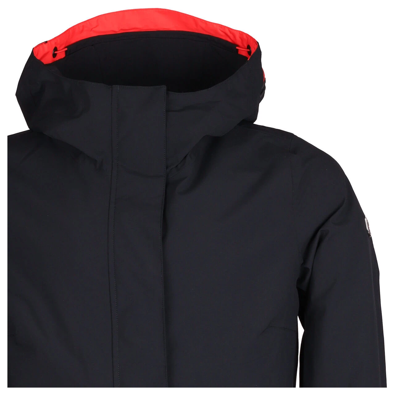 Dem Schmuddelwetter ein Schnippchen schlagen! Das können Sie in der Wellensteyn Damenjacke Barbarella. Dieses Modell bietet Ihnen die ideale Mischung aus zeitlos-schickem Jackendesign und Funktionalität. Praktisch ist zum Beispiel die geräumige Kapuze mit Stehkragen, die gegen Wind und Regen schützt. Hinzu kommen ein Zwei-Wege-Reißverschluss und eine verstellbare Taillenweite, die für ausreichend Bewegungsfreiheit sorgen. Zu guter Letzt gibt es noch zwei Außentaschen und eine Pocket im Innenbereich, die genügend Platz für alle Alltagsbegleiter bereithalten. Das Dunkelblau und der etwas längere, leicht taillierte Schnitt verleihen dieser Funktionsjacke schließlich die perfekte modische Note.