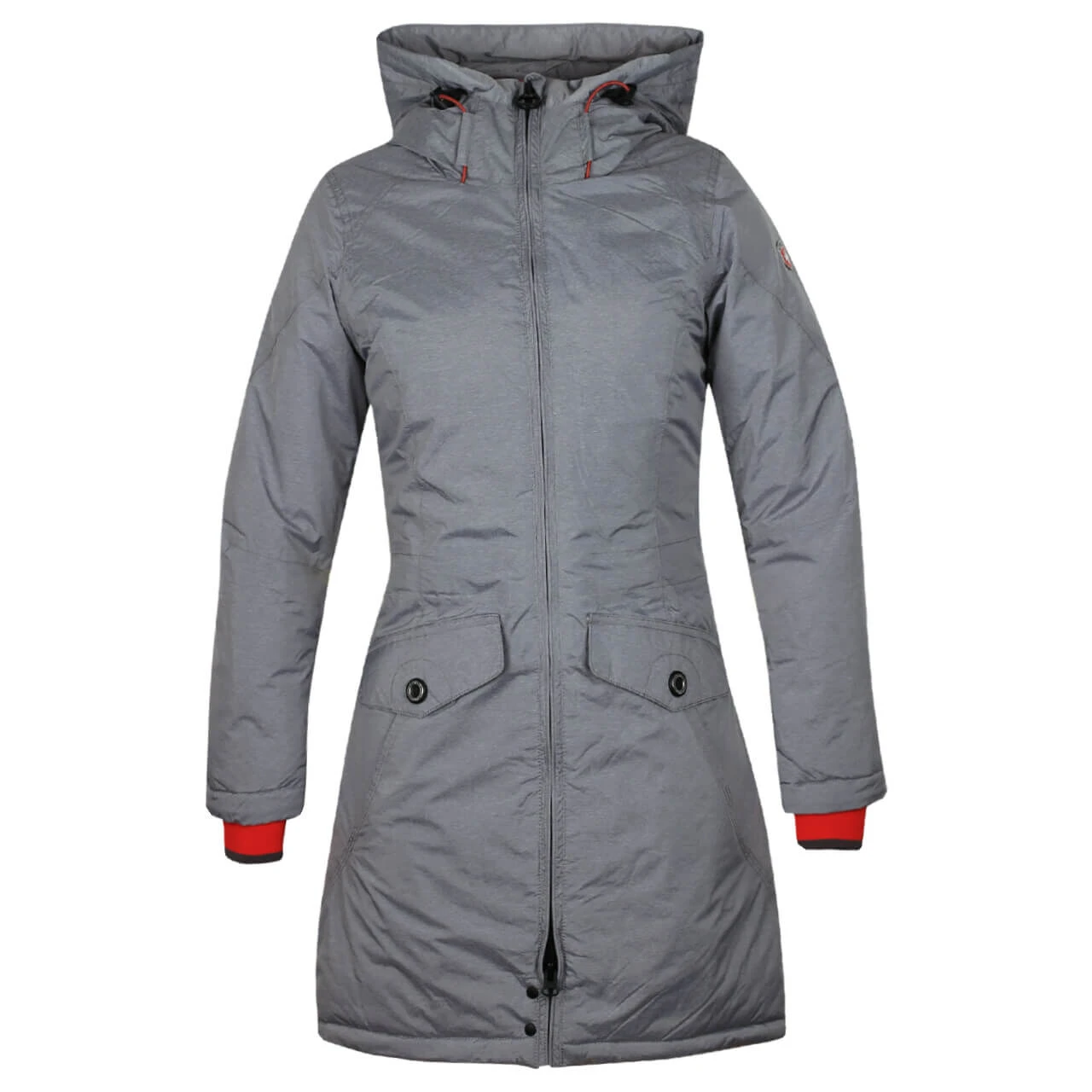 Die Wellensteyn Cucilla setzt mit ihren roten Details farbliche Akzente. In der größenverstellbaren Kapuze, am hohen Kragen und an den Ärmelbündchen kommt die knallige Farbe zum Vorschein. Den langen, figurbetonten Schnitt können Sie mit innenliegenden Taillenriegeln auf Ihre Körpermitte einstellen. Eine Innentasche und vier Hüfttaschen bieten sich Ihnen bei der Funktionsjacke an. Mit Zwei-Wege-Reißverschluss und Kinnschutz müssen Sie bei dem Modell auf nichts verzichten! Das glatte, abwischbare Material der Damen Winterjacke ist sehr pflegeleicht.