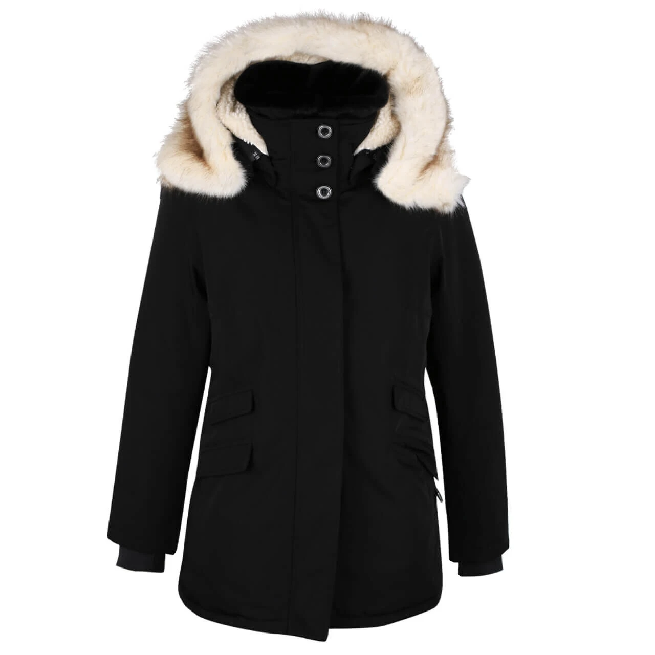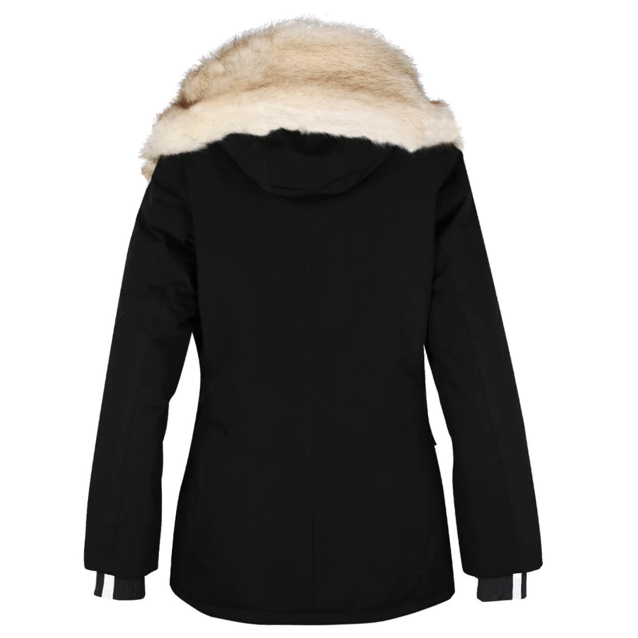 Klassisch schwarz präsentiert sich die Wellensteyn Enterprise: Insgesamt achtTaschen, eine davon innenliegend mit Zipper, versprechen Ihnen großzügigen Stauraum für Smartphone, Geldbörse und Co. Wasser- und winddichte Eigenschaften machen die Damenjacke funktional. Der Webpelzkragen am Hals sowie die größenverstellbare Kapuze sind je nach Belieben abnehmbar. Ein Zwei-Wege-Reißverschluss sowie ein innenliegendes Tunnelzugband sorgen für einen bequemen Sitz und den nötigen Komfort. Das kuschelige Teddyfell auf der Innenseite macht die Damen Winterjacke zu einem sicheren Modebegleiter bei Wind und Wetter. Ein dicker Pullover lässt sich ohne Probleme unter der Enterprise tragen.