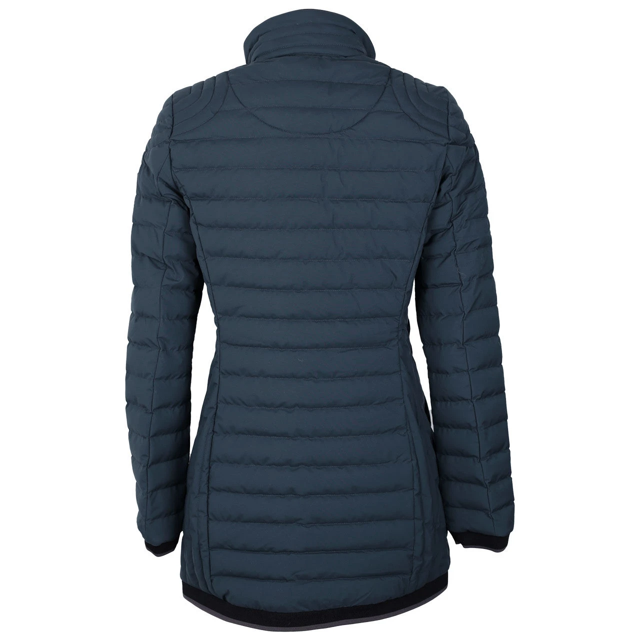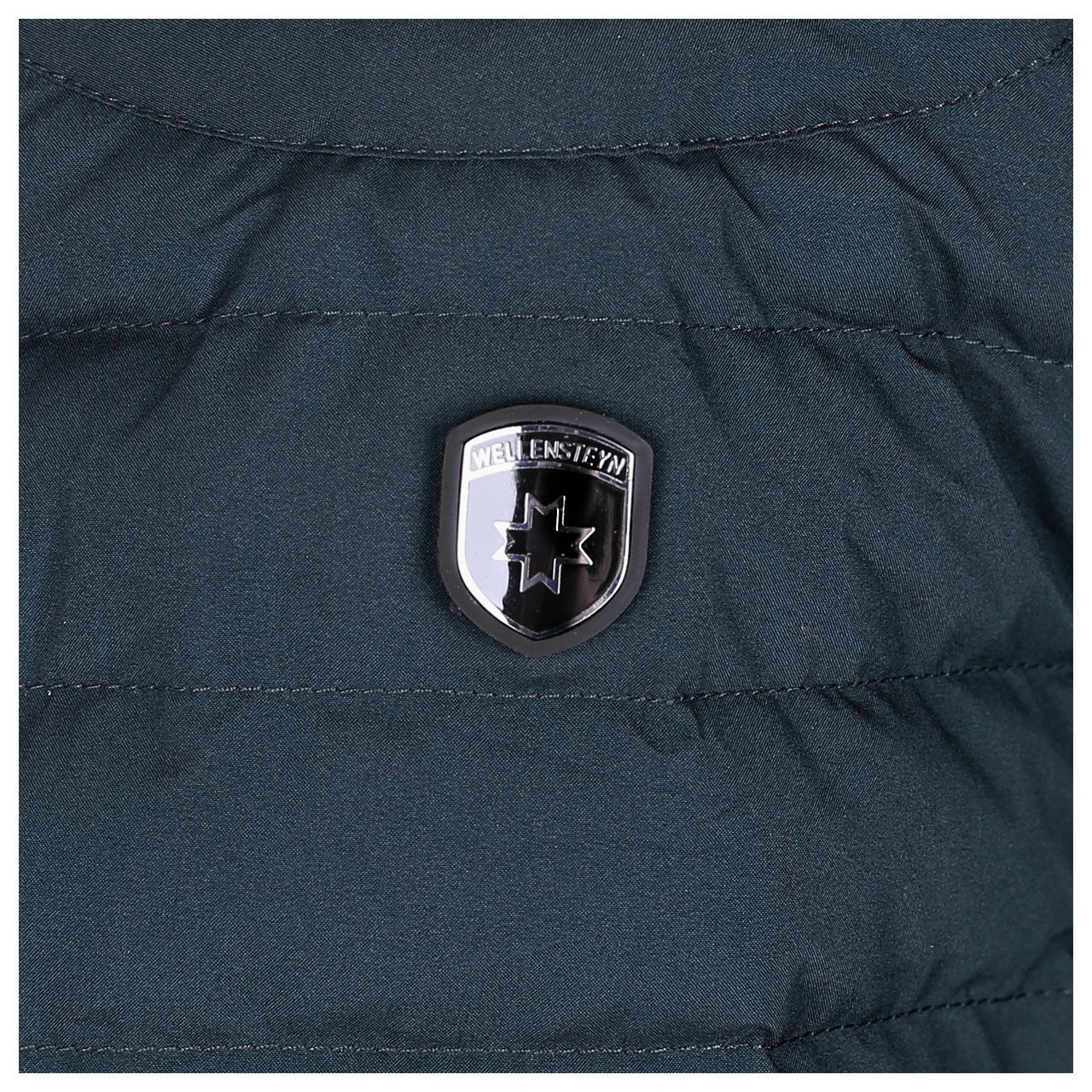 Die taillierte Wellensteyn Helium Medium überzeugt mit Design und Funktionalität: Der Stehkragen, die tiefen Taschen mit Zipper oder das atmungaktive und wasserabweisende Material halten Sie beim Einkaufen warm, das variierende Steppmuster, das Wellensteyn-Logo am Arm und die farblich abgesetzten Bündchen lassen Sie dabei auch noch gut ausschauen. Eine bordeauxfarbene Hose harmoniert mit dem dunkelblauen Ton der Jacke.