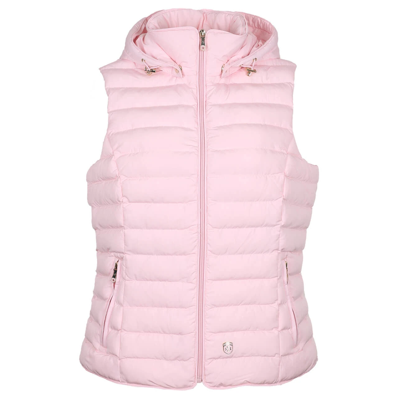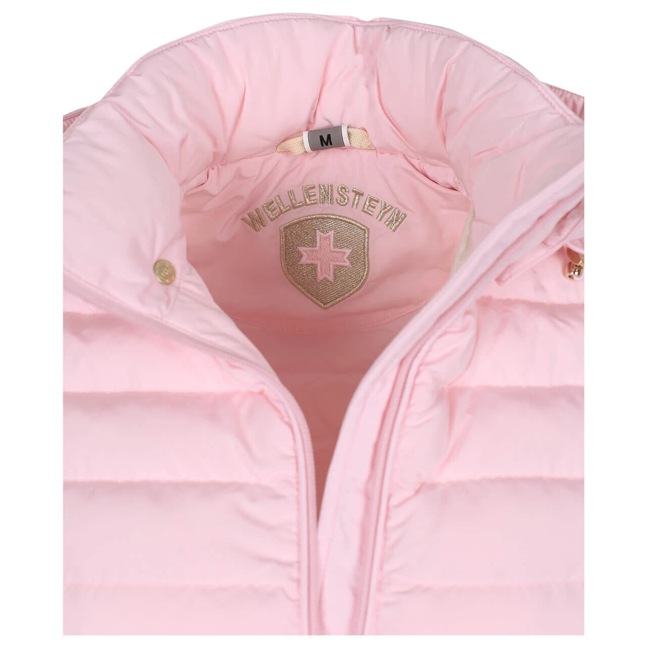 Tolle Farbkombi! Die Wellensteyn Italy Vest Hood verbindet ein trendiges Pastellrosa mit goldfarbenen Akzenten – zum Beispiel zu sehen an den beiden Reißverschlusstaschen oder an der abnehmbaren Kapuze. Die gesteppte, wattierte Übergangsweste mit Stehkragen punktet zusätzlich mit einer verschließbaren Innentasche. Die ärmellose Damenjacke hat einen sehr weichen Griff!