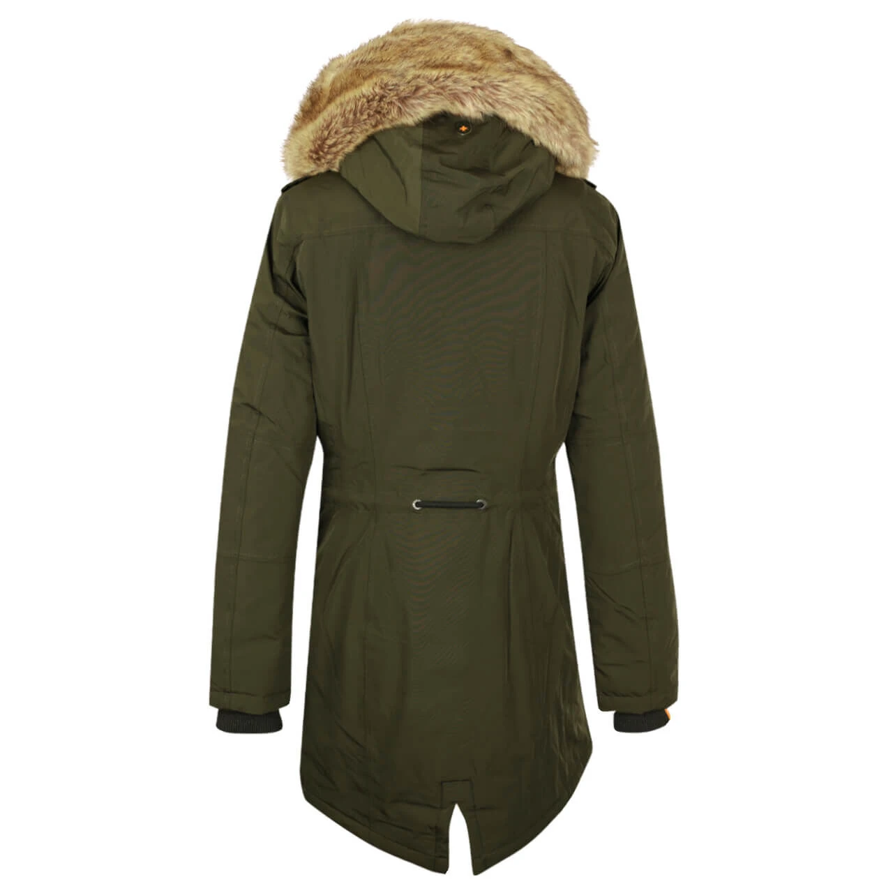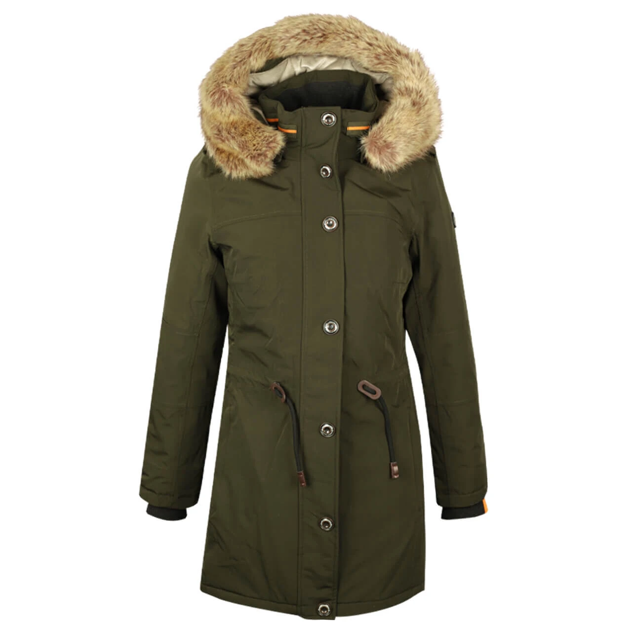 Mit der Wellensteyn Wolkenlos können Sie einfach nicht mehr frieren. Die Damen Winterjacke hat einen verlängerten Schnitt und verschweißte Nähte, die das Modell undurchlässig für Wind und Wasser gestalten. Unglaublich weiches Teddyfell kleidet von innen die beiden Hüfttaschen, den Schulterbereich und die abnehmbare Kapuze, die ihrerseits wiederum von einem abnehmbaren Fellkragen umgeben ist. Der Zwei-Wege-Reißverschluss punktet mit einem Kinnschutz und einer abdeckenden Knopfblende. Die atmungsaktive Funktionsjacke erinnert aufgrund ihrer olivgrünen Farbe und ihrer Form an einen Parka. Orangene Kontraste am Stehkragen oder im Wellensteyn-Logo am Arm peppen die zeitlose Farbe auf. Zwei Innentaschen mit Zipper und eine verstellbare Taille gestalten die Damenjacke sehr praktisch.